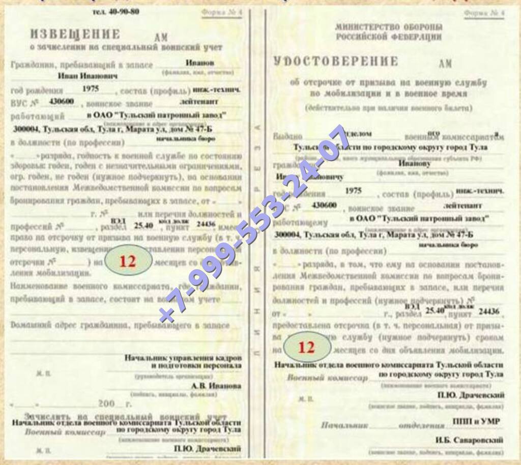 Наша компания предлагает купить в Чернушке удостоверение об отсрочке на военную службу на максимально выгодных условиях для клиента. Документы легальные, использованы бланки государственного образца.